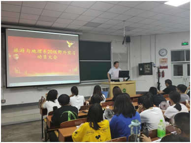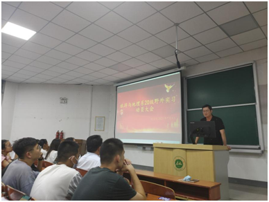 旅游与地理系党支部书记葛本伟老师谈到,安全问题是首要问题,同学们务必跟随队伍,听从指挥,遵守纪律,保障个人安全。同时他也对同学们野外实习的分组、穿着、饮食等方面做出要求,以促进此次野外实习圆满完成。