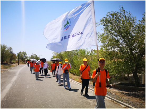 7月10日上午,同学们在带队老师的组织下乘车赴150团,参观位于准噶尔盆地古尔班通古特沙漠南缘的驼铃梦坡沙漠生态旅游区,并实地测量沙丘相关数据。