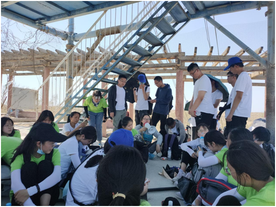 攀爬到沙丘顶部后,旅游与地理系教师高素芳为同学们讲述了该地沙丘的由来、特点等,并实地教授同学们测量沙丘数据的方法,以小组为单位布置了测量沙丘数据的任务。各小组同学合理分工,圆满地完成了测量任务。